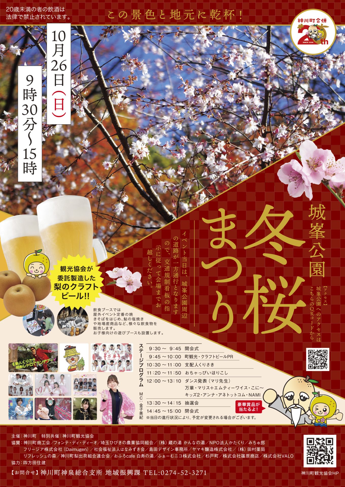 10月26日(日)に、「冬桜まつり2025」が城峯公園で開催されます。観光協会が委託製造した梨のクラフトビールをPRいたします!数量限定でクラフトビールの試飲も行う予定です。(20歳未満の者の飲酒は法律で禁止されています)城峯公園…