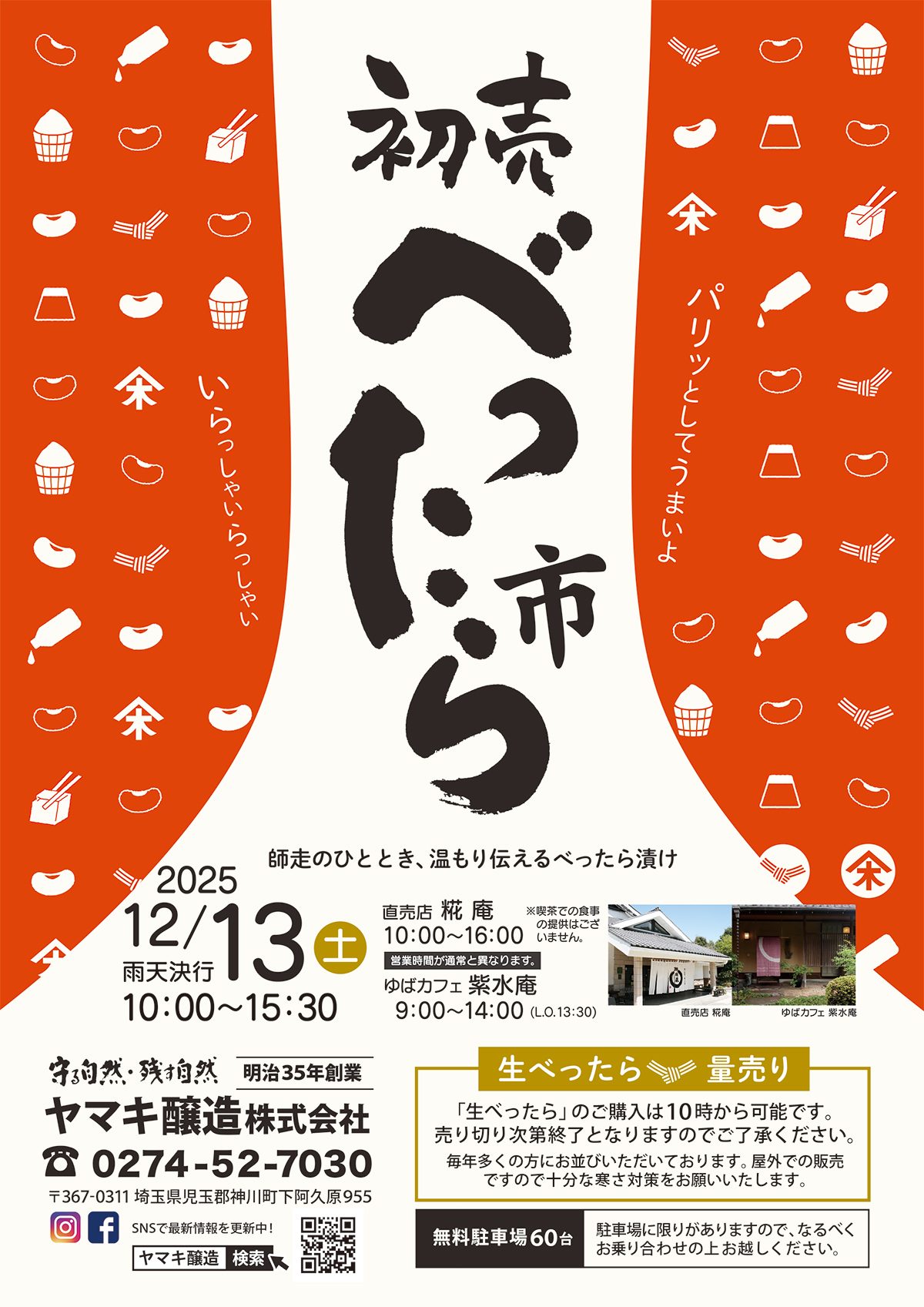 12月13日(土)にヤマキ醸造株式会社さんで、「初売 べったら市」が開催されます!生べったら漬が年に一日限りの数量限定販売されます!売切れ次第終了となります。昨年度、観光協会事務局員がべったら漬けを買いに行ったところ、すでに…