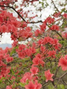 園内は紫色のツツジが終盤で、赤色のツツジが元気に咲いています。